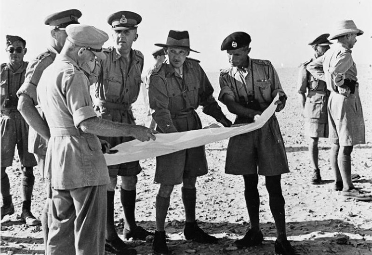 Lieutenant-General Bernard Montgomery, the new commander of the British Eighth Army, and Lieutenant-General Brian Horrocks, the new GOC XIII Corps, discussing troop dispositions at 22nd Armoured Brigade HQ, 20 August 1942. Image credit: Public Domain, via Wikimedia Commons