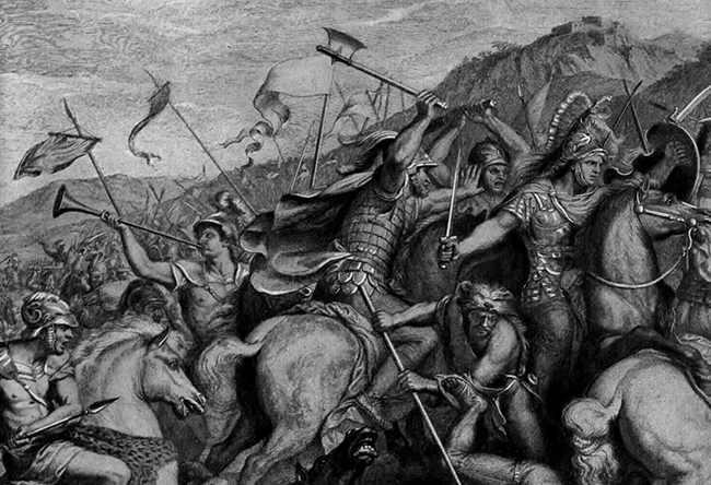 Eventually Alexander and his cavalry, equipped with sturdy lances that were far more effective than the Persian spears, gained the upper hand. At the same time Alexander’s light infantry moved among the horses and created further panic in the Persian ranks.