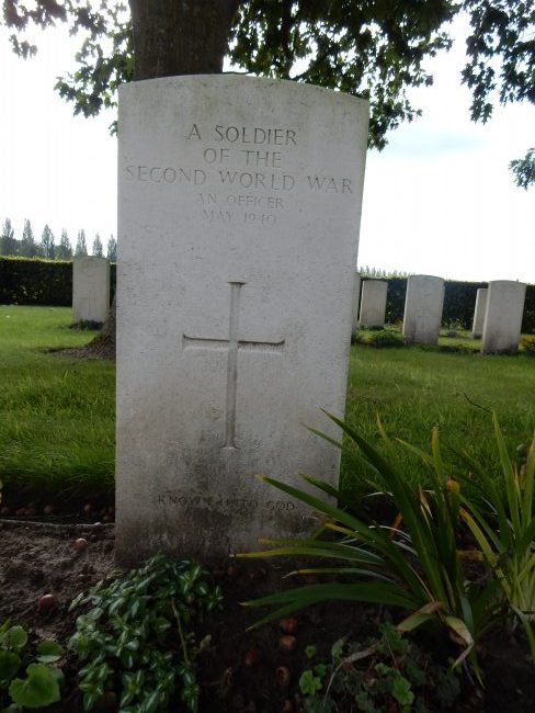 An unknown officer, in the Grenadier plot, killed in action on 21 May 1940. Both Major Reggie West and Lieutenant Reynell-Pack of the 3rd Grenadiers remain unaccounted for. Image source: Dilip Sarkar Archive.