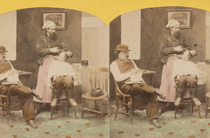 Image Credit: Stacy, George, Publisher. Barber Shop. , None. [New york, n.y.: george stacy, between 1861 and 1866] Photograph. https://www.loc.gov/item/2017647860/.