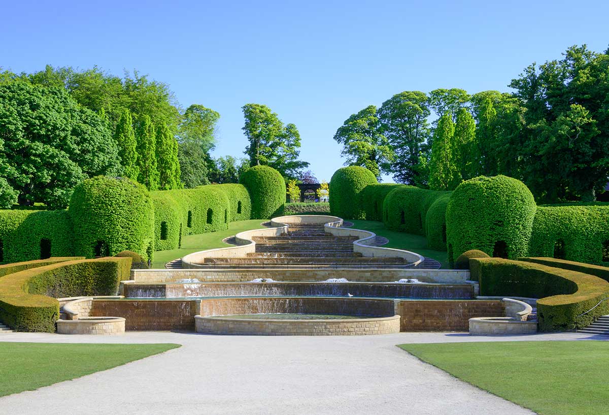 Besides meticulous manicured lawns, well trimmed bushes and perfectly kept flowerbeds, the grounds are decorated with stunning statues and water features dotted across the massive gardens.