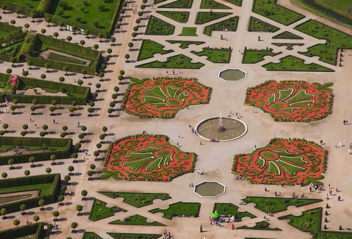 Aerial view of the Rundāle Palace gardens, 13 August 2011