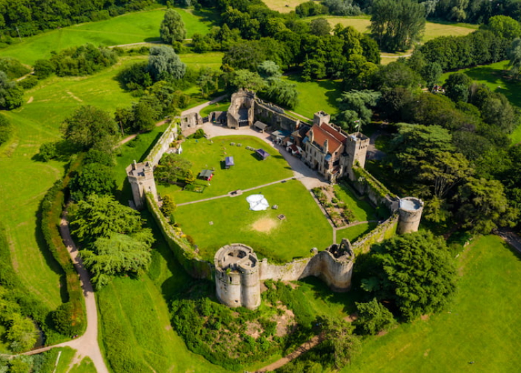 Situated in the town of Caldicot, southeast Wales, Caldicot Castle was built near the site of Harold Godwinson’s former Saxon castle by the Normal earls of Hereford from around 1100. Though it was long occupied, it was eventually neglected and became little more than a farmyard. It was sold in 1857, and again in 1885, at which time it was restored as a family home. It was then owned by the same family and even had apartments created in it until 1964.