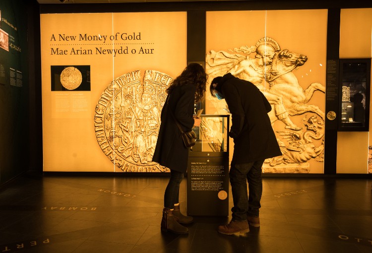 Guests looking at the Henry VII Sovereign at The Royal Mint Experience.