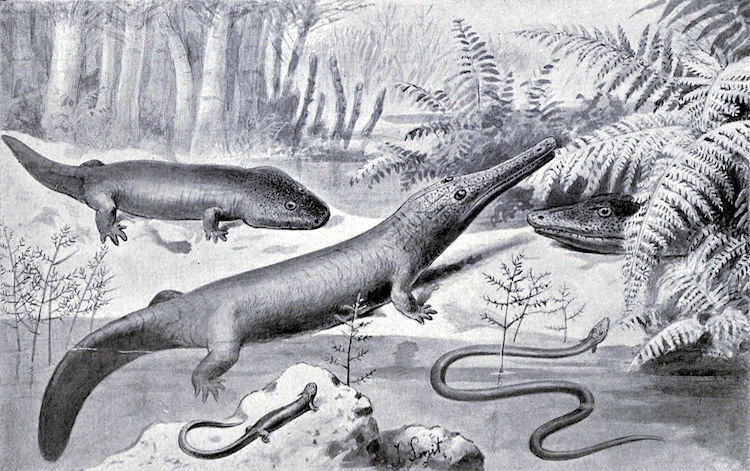 Permian amphibians: Actinodon, Ceraterpeton, Archegosaurus, Dolichosoma, and Loxomma. By Joseph Smit, 1910.