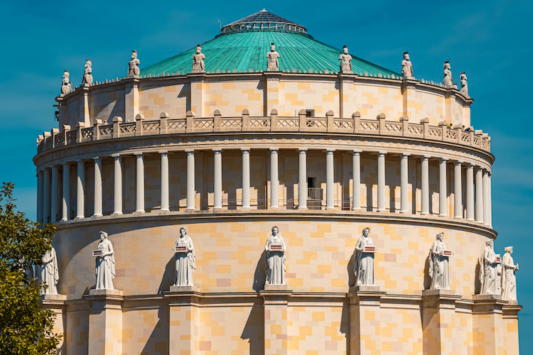 As is evident from taking one step inside, the hall was modelled on the ancient Roman and Italian Renaissance architectural style of centrally-planned buildings. The 18 exterior buttresses that encircle the memorial are topped by huge allegories of Germanic tribes. The number ‘18’ is significant as it commemorates the Battle of Nations on 18th October 1813, when Napoleon’s troops suffered a crippling defeat.