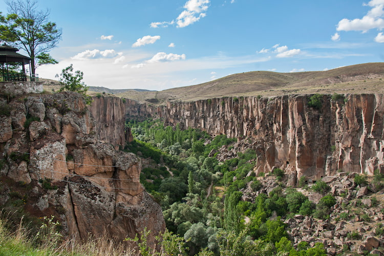 As well as the historic attractions, the natural scenery of Ihlara Valley is spectacular and boasts wild olive trees next to the clear, green Melendez river. Taking up residence among the vineyards, poplars and pistachio trees are a number of lizards, frogs, and the occasional eagle.