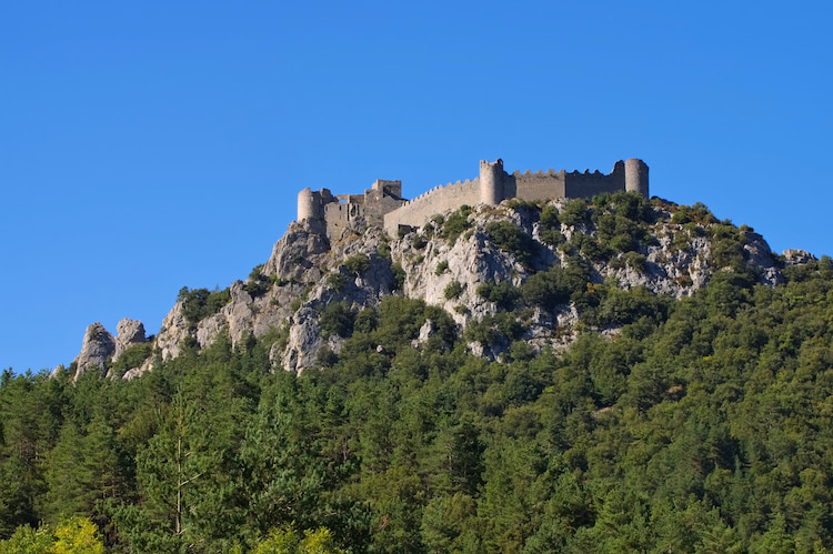 The Cathar castles in the Languedoc region offered refuge to dispossessed Cathars, but many were conquered by French crusaders. Puilaurens Castle belonged to the Abbey of Saint-Michel de Cuxa before it was acquired by the King of Aragon in 1162, which meant it was spared ravaging by the Crusaders during the Cathar wars. Some of those taking refuge at Puilaurens included high nobles such as Guillaume de Peyrepertuse, who had a castle of his own until the conflicts.