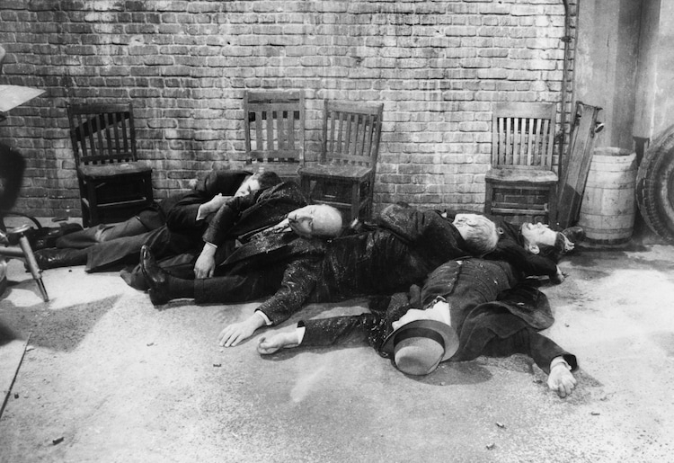 After the killings had taken place, the two of Capone’s men in civilian clothing came out onto the street with their hands up, prodded by the two men disguised as policemen. All appeared to be under control.