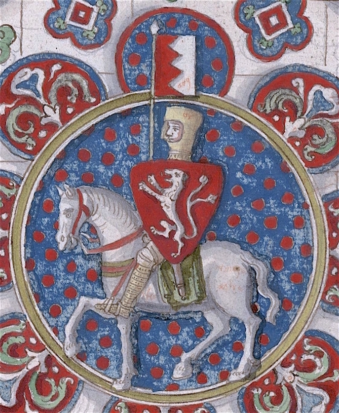 Drawing of a stained glass window of Chartres Cathedral, depicting Simon de Montfort, 6th Earl of Leicester. Image credit: Public domain, via Wikimedia Commons