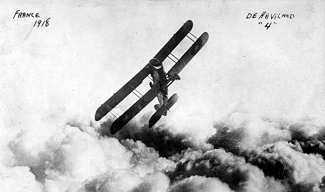 The first British high-speed day bomber, the Airco D.H.4 had a 160 h.p. B.H.P engine and proved one of the swiftest, most reliable aircraft of the First World War. It did, however, have one main flaw: its fuel tank was placed in the vulnerable centre of the aircraft, between the two cockpits. In the rear cockpit was the observer, equipped with a Lewis gun.
