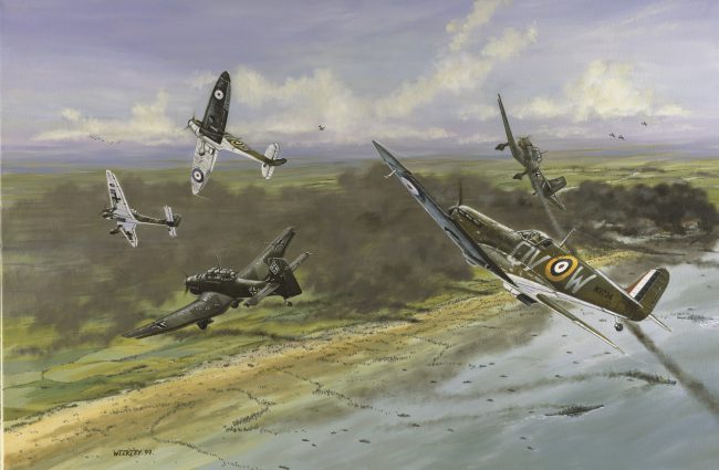 Featured Image Credit: 19 Squadron in action on 26 May 1940, painted by and courtesy of Barry Weekly.