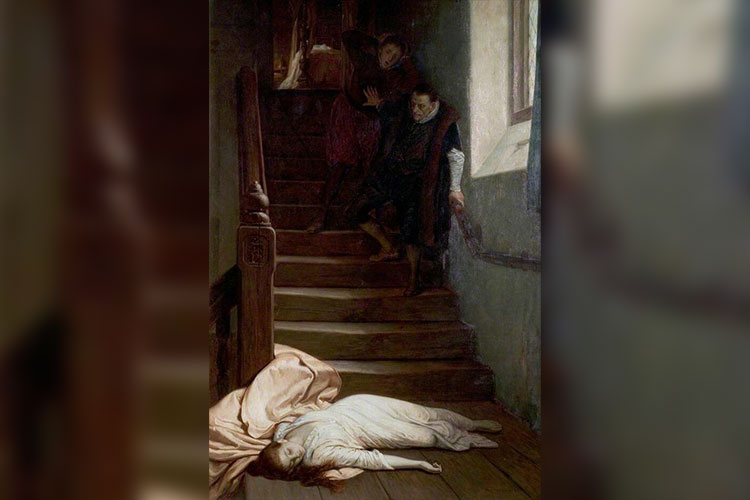 The Death of Amy Robsart, as imagined by Victorian artist William Frederick Yeames, 1877