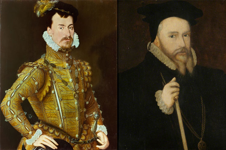 Left: Robert Dudley, c. 1560; Right: Portrait of William Cecil, c. after 1570