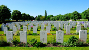 At 9:30am George Ellison was killed, the last British soldier to die on the Western Front. He was killed only a couple of miles away from where the first British soldier to be killed, John Parr, had died in August 1914. They are buried in the same cemetery, opposite each other.
