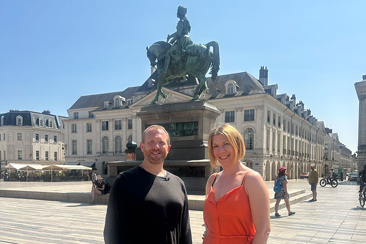 Dr Anthony Delaney and Professor Kate Williams upstairs at The Savoy Hotel, London