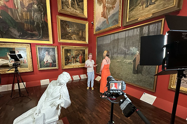 Kate Lister filming at the Museum of Icelandic Sorcery and Witchcraft in Hólmavík, where she speaks to curator, Anna Pórarinsdóttir and is shown a replica of the infamous ‘necropants’.
