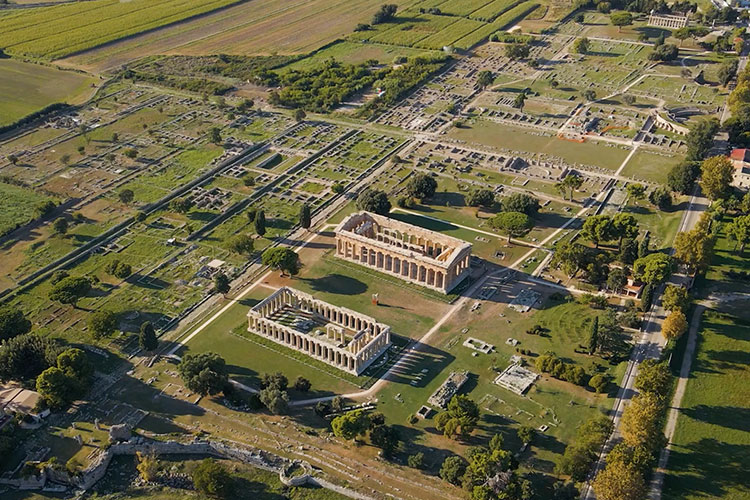 Founded by Greek colonists 2,500 years ago, Paestum is a living testament to a vibrant, untold chapter of the ancient Mediterranean. Originally named Poseidonia, after the Greek god of the sea, the city was one of over 50 Greek settlements established along the Italian coastline – a region that became known as Magna Grecia (‘Greater Greece’). The settlers brought their rich culture, thriving on the fertile agricultural soils and lucrative trade routes, leaving an indelible mark in southern Italy well before the rise of Rome.