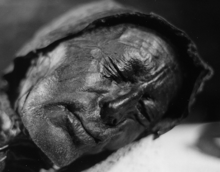 The stunningly well-preserved remains of the Tollund Man. Note his stubble, still visible.