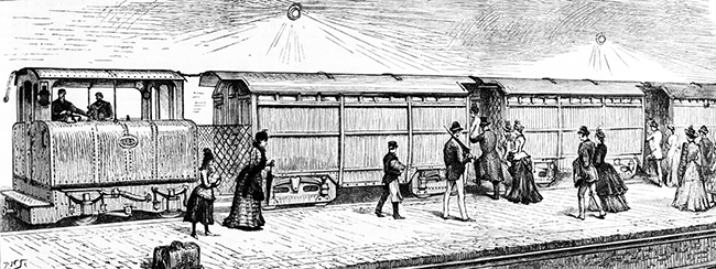 Instead Greathead initially intended to use a cable haulage system to pull the carriages through the tunnels. But when the Patent Cable Tramway Corporation went bankrupt in 1888 electric traction became the favoured method. The carriages would be pulled by electric locomotives powered through a third rail supplied by a generating station at Stockwell.