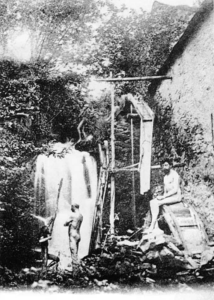 Men bathing at the Ascona Nature Cure Sanatorium. On the right is Erich Mühsam, a German-Jewish anti-militarist, anarchist poet and playwright.