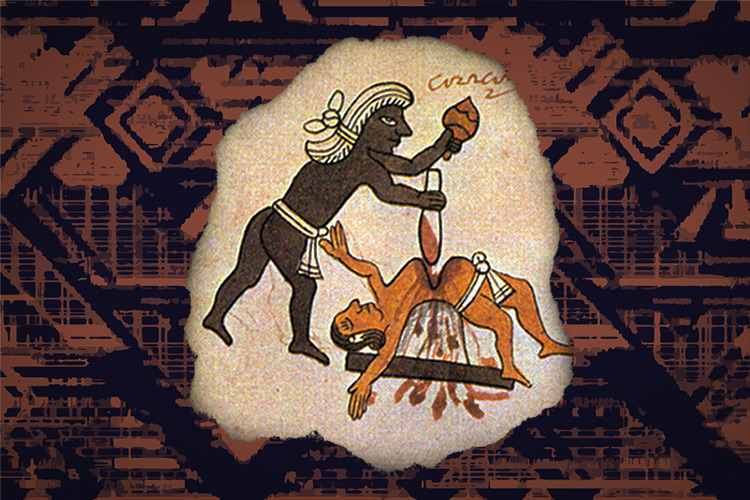 A depiction of the heart being cut out as part of Aztec human sacrifice.