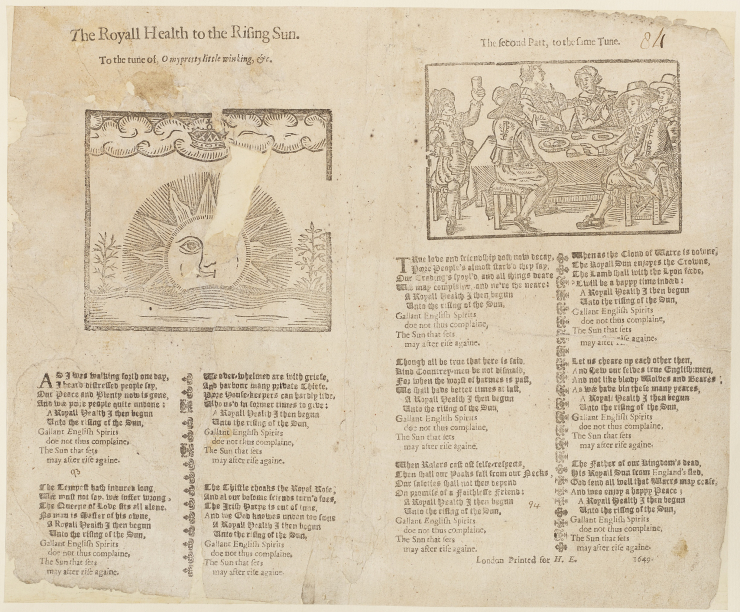 ‘A Royall Health to the Rising Sun’ by Unknown, 1649, Manchester Central Library – Blackletter Ballads, BR f 821.04 B49, EBBA 36035 (Image Credit: CC)