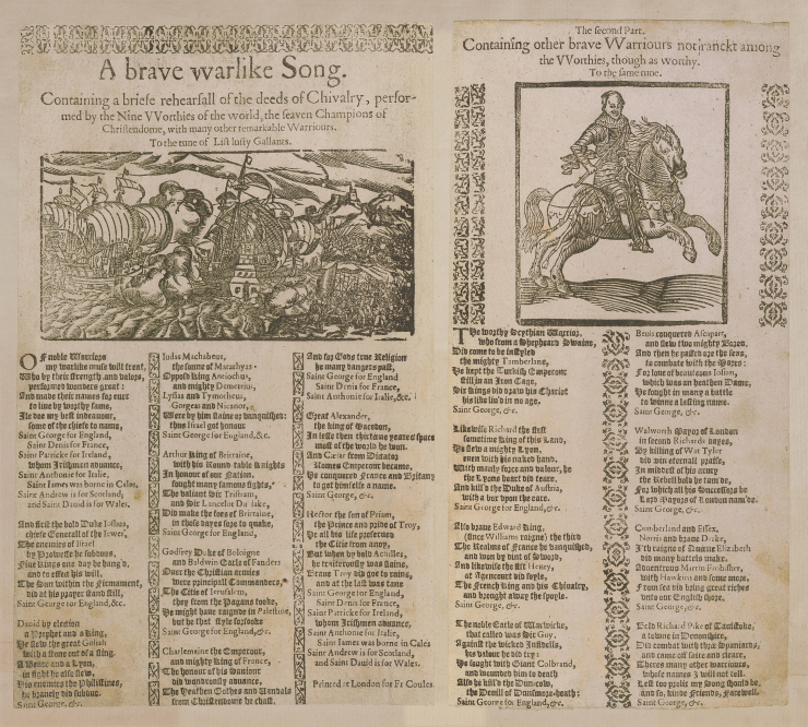 ‘A brave war-like song’ relays the chivalrous deeds of ‘seven Champions of Christendom’, including Henry V and King Arthur, and aligns them with other ‘Nine Worthies of the world’, such as Alexander the Great and Julius Caesar.