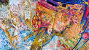 This illusion may have been inspired by popular entertainment in French theatres, the tableau vivant or ‘living picture’. These were a theatrically lit display of costumed actors, with silently held poses, appearing in much the same way as Delaroche’s small cast of life-size figures on a raised platform.