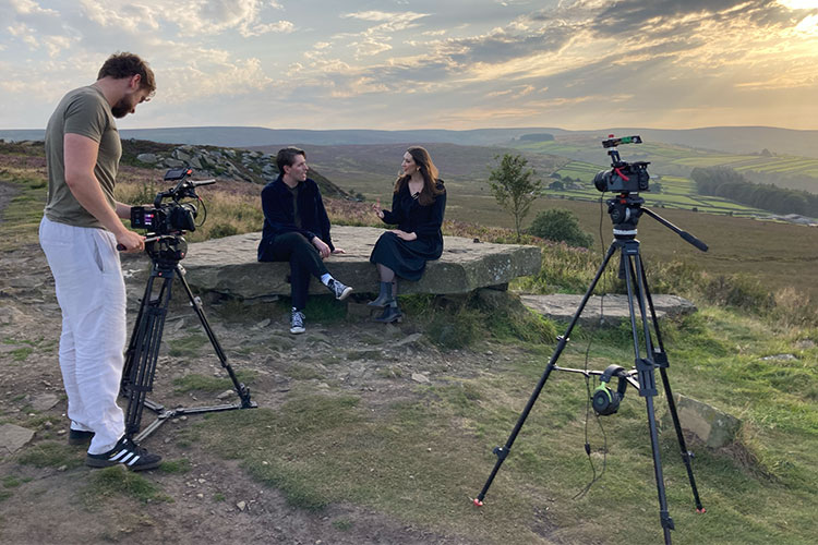 Presenter Dr Madeleine Pelling (left) with Director & Producer Laura McMillen (centre) and Shooting Assistant Producer, Shane Smith (right) – on location in Scarborough.