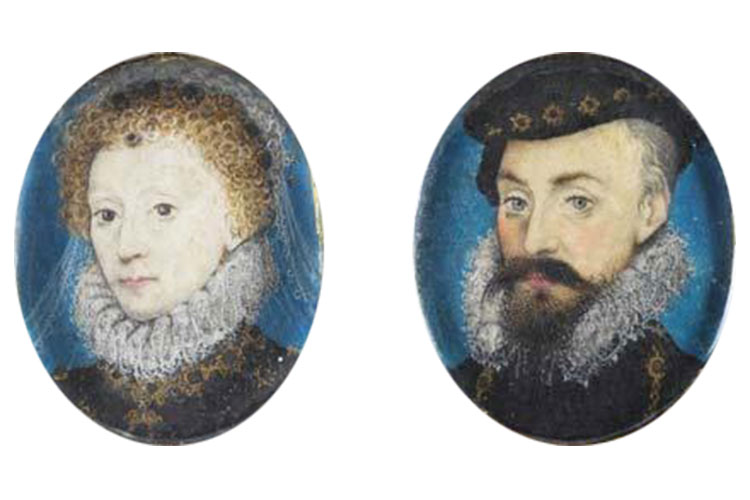 Pair of miniatures of Elizabeth I and Robert Dudley, c. 1575, by Nicholas Hilliard.