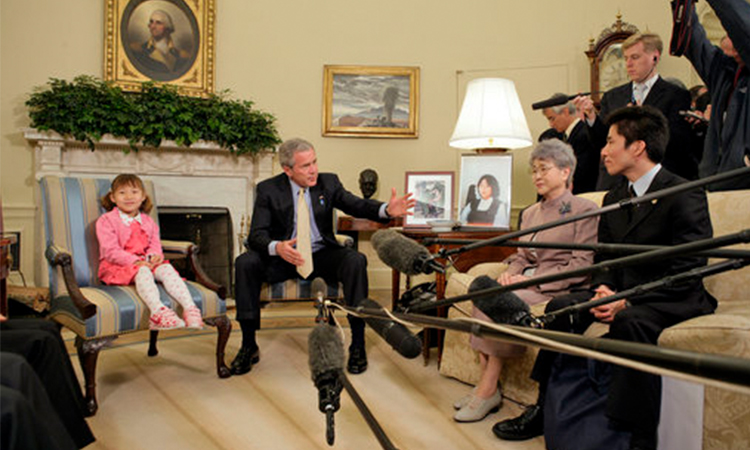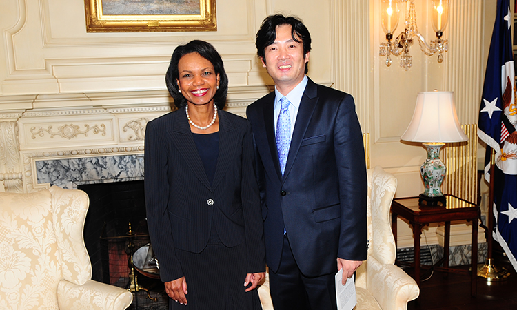 Kim Cheol-Woong with Condoleezza Rice following his defection from North Korea