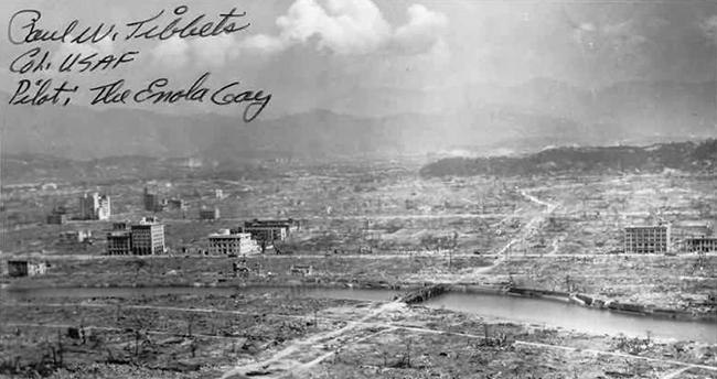 On August 6 1945, an American B-29 bomber dubbed Enola Gay dropped an atomic bomb on the Japanese city of Hiroshima. It was the first time a nuclear weapon had been deployed in warfare and the bomb immediately killed 80,000 people. Tens of thousands more would later die of radiation exposure.