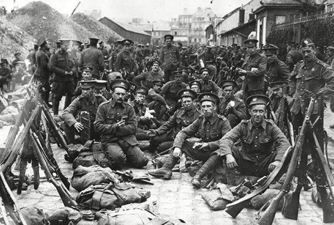 British soldiers before the Battle of Mons. (Image Credit: Public Domain).