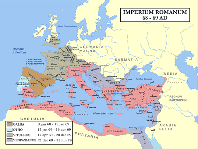 The year that followed Nero’s suicide in 68 was marked by a vicious struggle for power. Nero was succeeded by the Emperor Galba, but he was soon overthrown by his former deputy Otho.