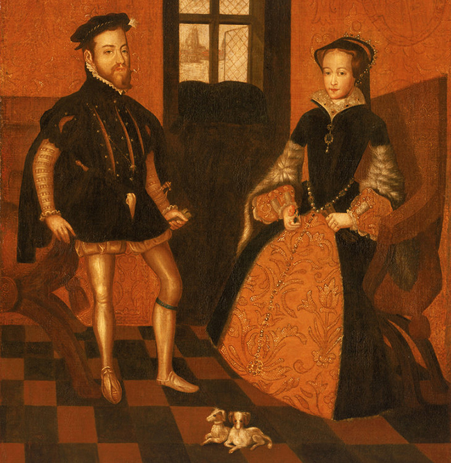 Spain’s Philip was the widower of Catherine’s daughter and Elizabeth’s half-sister and predecessor, Mary I of England. Philip, a Catholic, saw Elizabeth as an illegitimate ruler because Henry and Catherine had never officially divorced under Roman law. He is alleged to have plotted to overthrow Elizabeth and install her Catholic cousin Mary, Queen of Scots, in her place.