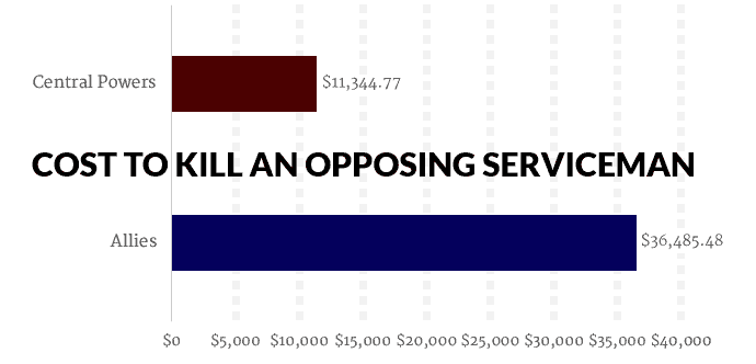 8. It cost the Allies $36,485.48 to kill an opposing serviceman – significantly more than it cost the Central Powers