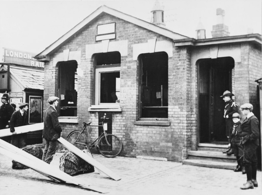 London too was not spared as the Kaiser had initially intended, and in August 1915 the first Zeppelins reached the city, dropping bombs on Walthamstow and Leytonstone. Not wanting to arouse panic, the government initially gave little advice except in the form of policemen on bicycles, who would blow whistles and tell people to ‘take cover’.