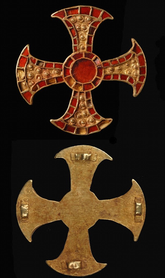 This golden cross broach was found in the burial site of a 16-year-old girl from the seventh century AD. It was found amongst many other items, revealing the melding of Christian and Pagan tradition at this time.
