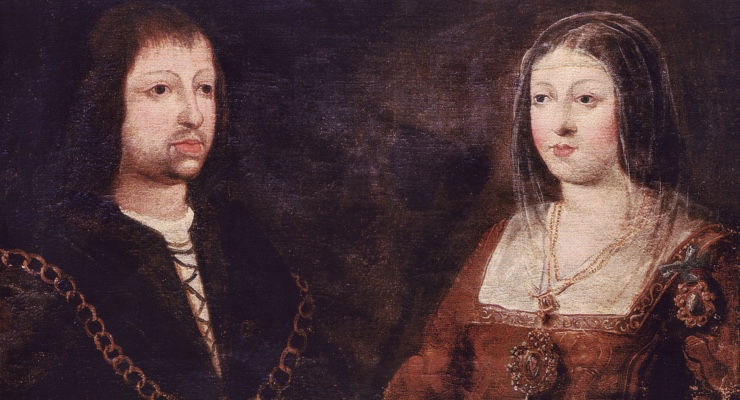The introduction of the queen in chess is thought to have been inspired by the strong female rulers of medieval Europe, such as Isabella of Castile (depicted here with husband Ferdinand of Aragon) – although this is disputed by some historians