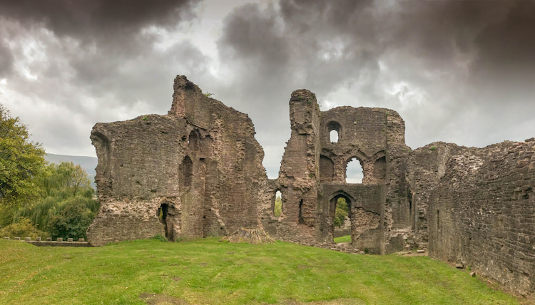 The ruined Abergavenny Castle was first established from 1087 by the Norman Lord Hamelin de Balun. It was the site of a massacre of Welsh noblemen in 1175, and was later attacked during the 15th-century Glyndŵr Rising. No lord took up residence at the castle after the 15th century, and during the English Civil War, Charles I ordered it be slighted so that it couldn’t be usefully occupied by the Roundheads. It quickly became known for its pretty ruins.