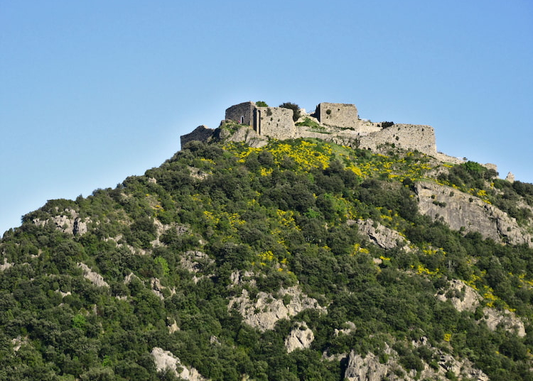 The Château de Termes is a ruined castle near the village of Termes in the Aude département of France. It is one of the so-called Cathar castles and one of the “sons of Carcassonne” (five castles defending the border with Aragon and later, Spain).