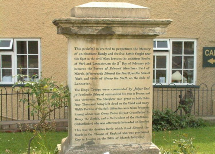 While the exact location of Mortimer’s Cross Battlefield is still a subject of debate, the position highlighted on the map is the location of a monument to the battle.