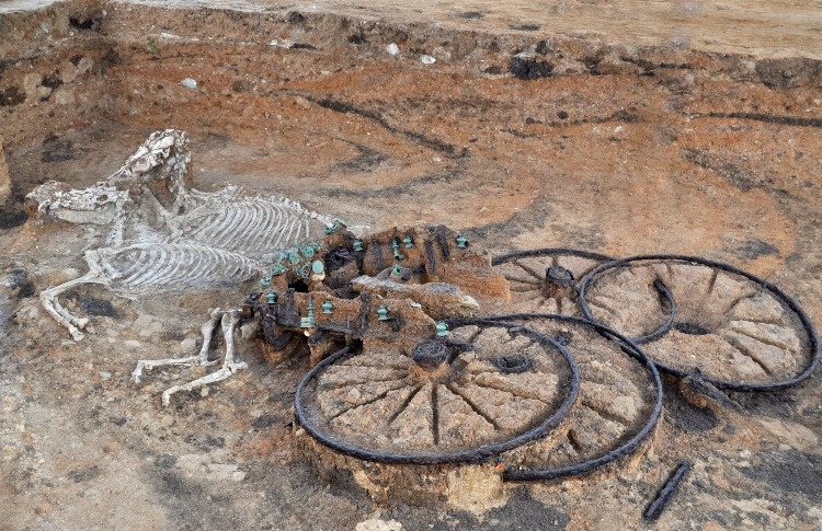 The Thracian’s chariot is also on display, complete with an intact decoration. It is distinctive for having four intact wheels of unusual size.