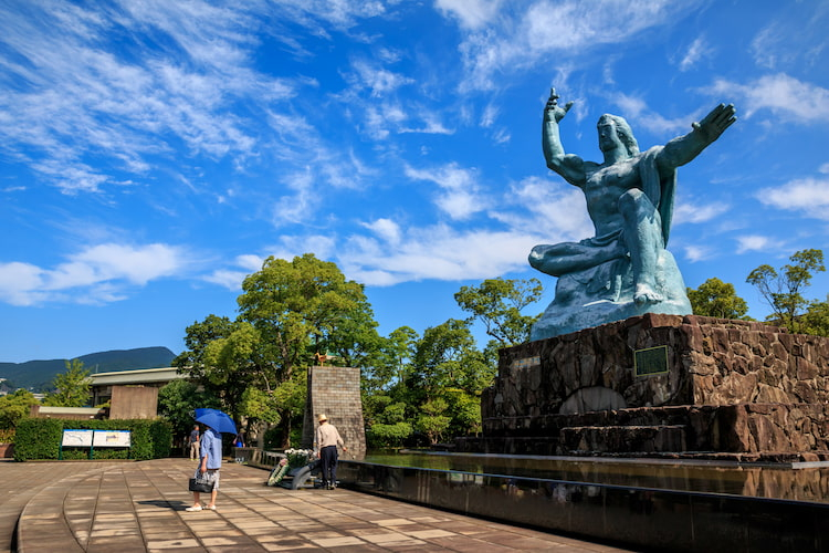The Nagasaki Peace Park commemorates the atomic bombing of this Japanese city by American forces in World War Two. This occurred on 9 August 1945, three days after the bombing of Hiroshima. Approximately 74,000 people were killed and 30% of the city was devastated, with many more suffering the effects of radiation poising many decades later.