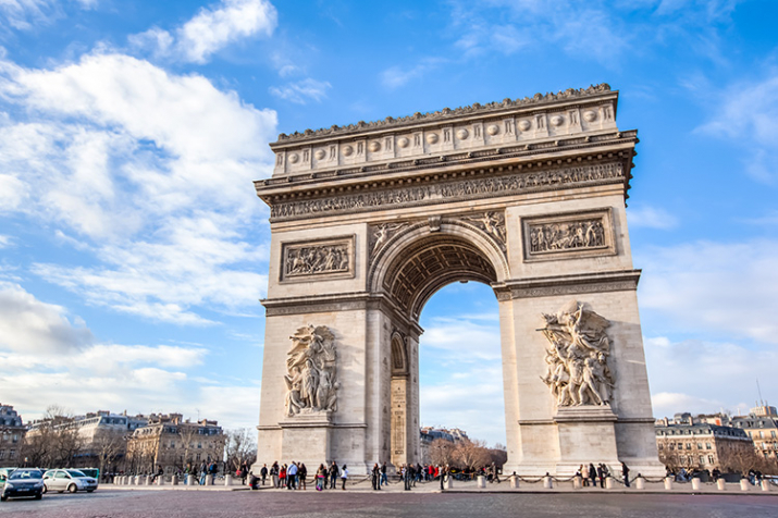The Arc de Triomphe is a 162 foot monumental arch in the centre of the Place Charles de Gaulle. It was commissioned by Napoleon in 1806, shortly following his victory at Austerlitz, with the aim of commemorating French soldiers, particularly those who fought in the Napoleonic Wars.