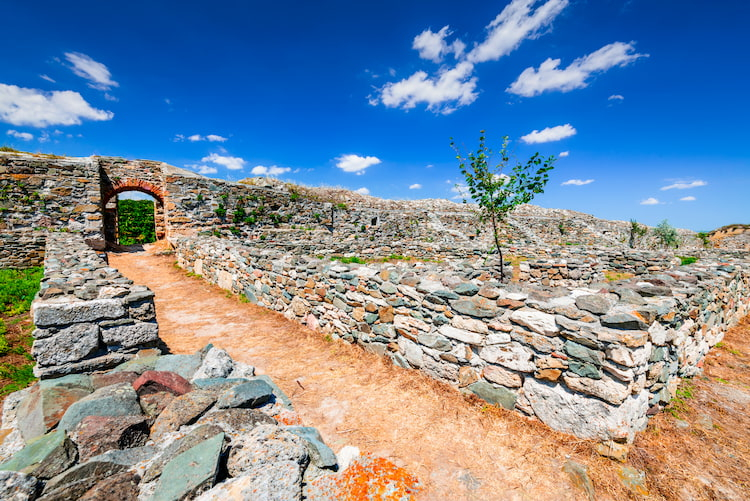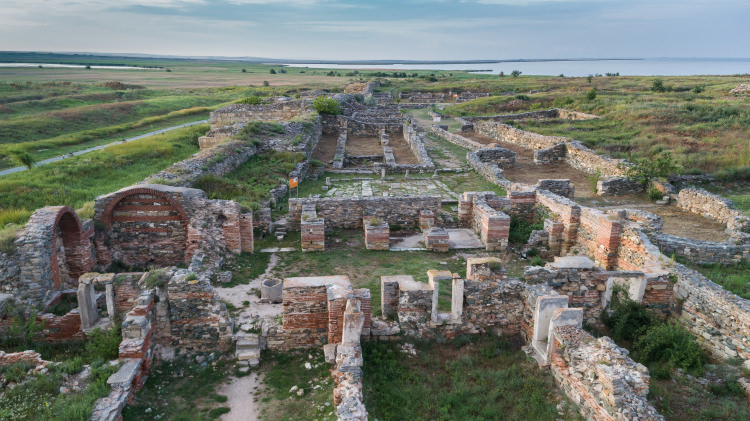 Histra was once a harbour, first occupied by the Ancient Greeks in 675 BC. Under the Greeks, it flourished into a centre of trade, specialising in ceramics, glass and metals. The earliest Romanian currency, the 8g silver Drachma, was first issued in Histria in circa 480 BC.