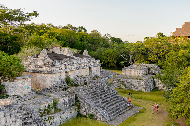 Among the sites to explore are a large holy pyramid called the Temple of the Church, a playing field used to play ball games, and the Great Pyramid, also known as the Nohoch Mul Pyramid. Rising to a height of 138 feet, the Great Pyramid is the second tallest of all Maya pyramids in the region. Climbing the steep stairs of this pyramid can be daunting, but the views are great.