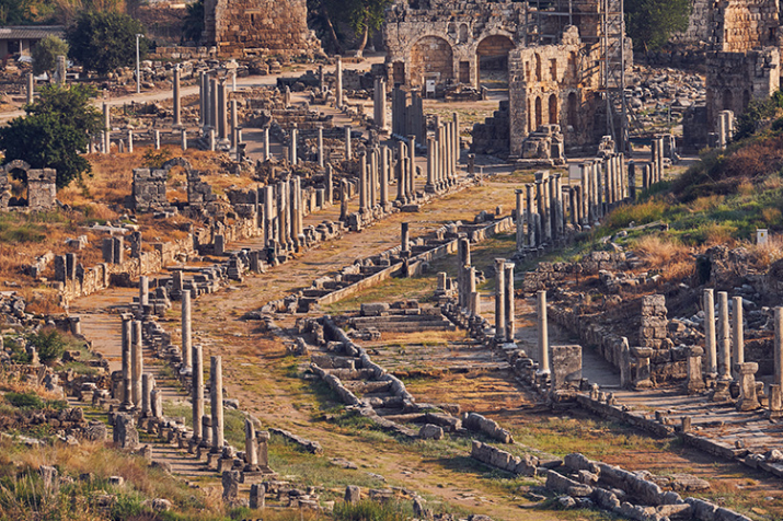 The ancient city of Perge near Antalya in Turkey is now an impressive archaeological site containing a wealth of ancient ruins, mostly dating back to the Roman period, though the city itself has a history dating back well into antiquity.