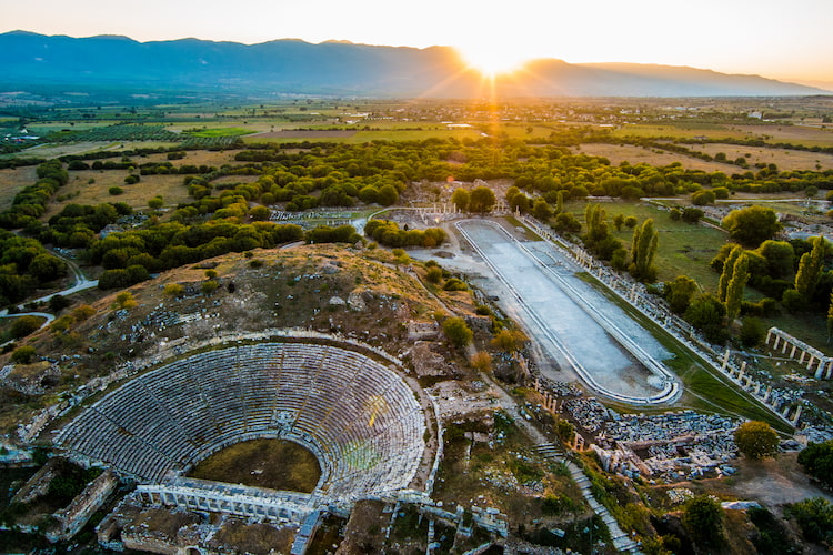 Today, Aphrodisias is an archaeological site, whose ruins include the remains of a beautiful ancient stadium.
